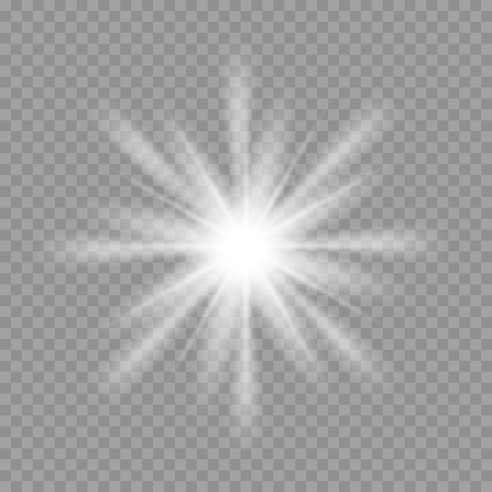 透明な背景に白いライト 輝く光を伴う太陽光効果 サンシャインテンプレート 明るい白い光とレンズフレア グローライトエフェクト ベクターイラスト のベクター画像素材 ロイヤリティフリー